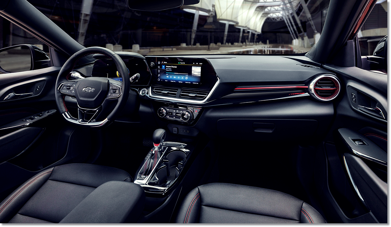 신형 전기차들에서 선보인 쉐보레 최신 디자인을 따라가고 있으며, 미국 자동차의 강점과 정리정돈이 잘 됐습니다. 육각 스타일 8인치 클러스터와 11인치 중앙 디스플레이 제트 터빈을 형상화한 에어컨 벤트가 예쁘게 자리 잡고 있습니다. 선루프가 옵션으로 탑재되어, 무선 애플 카플레이와 안드로이드 오토를 제공하고 있습니다.