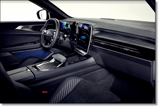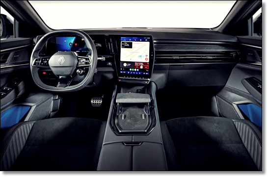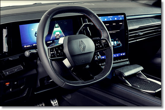 차세대 르노가 공유하는 오픈 R 콕핏이 적용됐으며, 12.3인치 디지털 클로스터와 9.3인치 HUD 그리고 현행과 비슷한 12인치 세로형 디스플레이가 눈길을 끕니다. 휴대폰에 들어가는 '그릴라 글라스'가 탑재돼 내구성과 반사를 억제시켰으며, 스마트폰과 비슷한 선명도를 제공하고 있습니다.