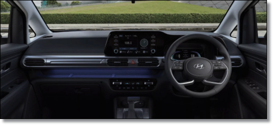4.2인치 클러스터와 최대 10.25인치 센터 터치스크린이 심플하게 자리잡고 있고, 전체적으로 가로로 연출한 센터페이사로 인해 시각적으로 조금 더 넓어 보이는 효과가 있네요.