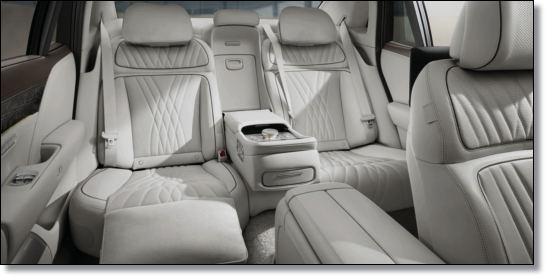 롱 휠 베이스를 기반으로 한 이 차량은 정상급 자동차 롤스로이스, 마이바흐 등에서 주로 선보인 투 톤 페인팅이 시선을 사로잡습니다. 이번에 최초로 선보인 차량은 진주빛과 빛을 받으면 은은한 붉은빛을 띠는 독특한 청색이 조화를 이루는데요.