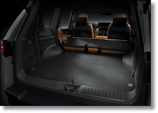 여기에 2열 공간은 상당히 넓은 편에 속하는 렉서스 LX는 의전용도 존재하고 있습니다. 의전용으로 사용되는 4인승은 독립 컴포트 시트와 대형 디스플레이를 제공하고 있습니다. 7인승을 선택해도 넉넉한 3열은 물론, 2열과 3열을 폴딩 하면 2,010L까지 확장되는 트렁크는 압도적이네요.